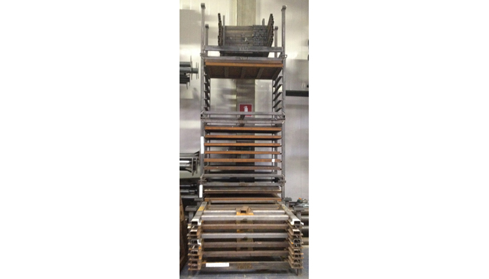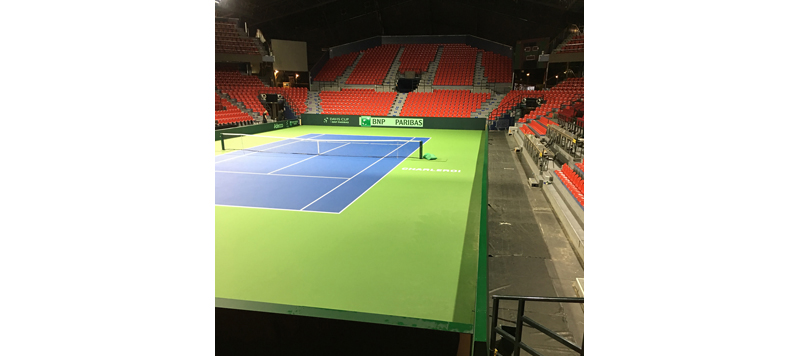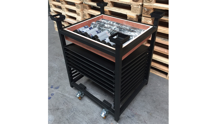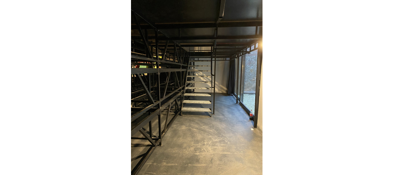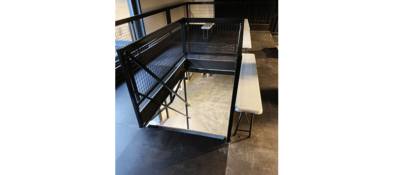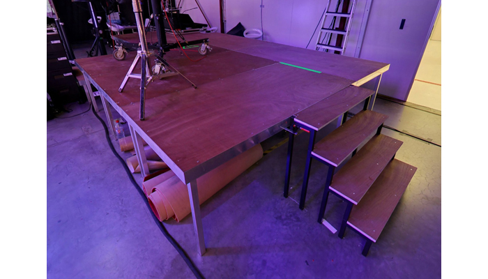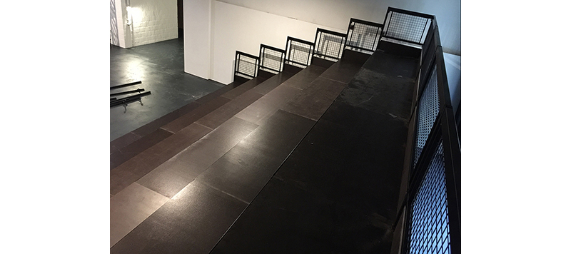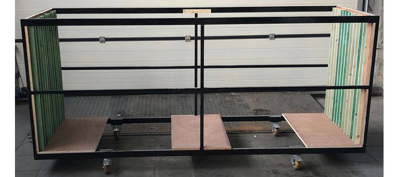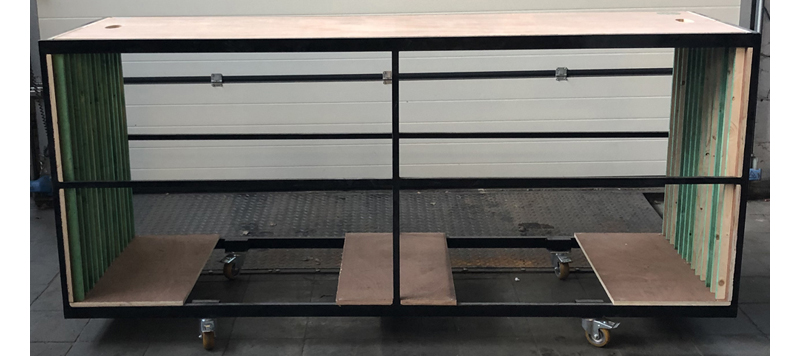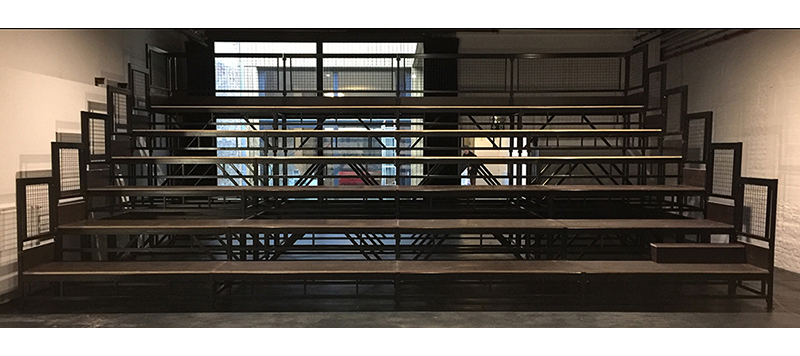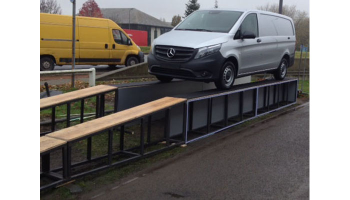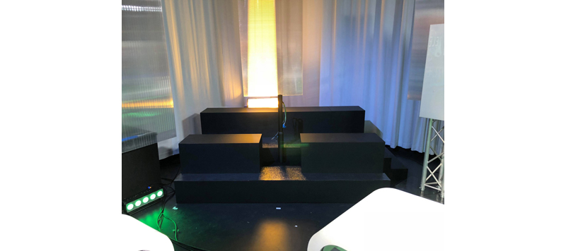 Podium de 32m² + pieds en métal de 20,40,60,80 et 100cm + escalier + chariot pour 4820 euros HTVA